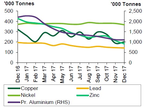 Средняя цена на неблагородные металлы в декабре сократилась на 0.5%. Это обусловлено некоторым спадом производственной активности в начале последнего квартала года в Китае. Однако, цены во второй половине месяца восстановились, чему дополнительно способствовало ослабление доллара США.