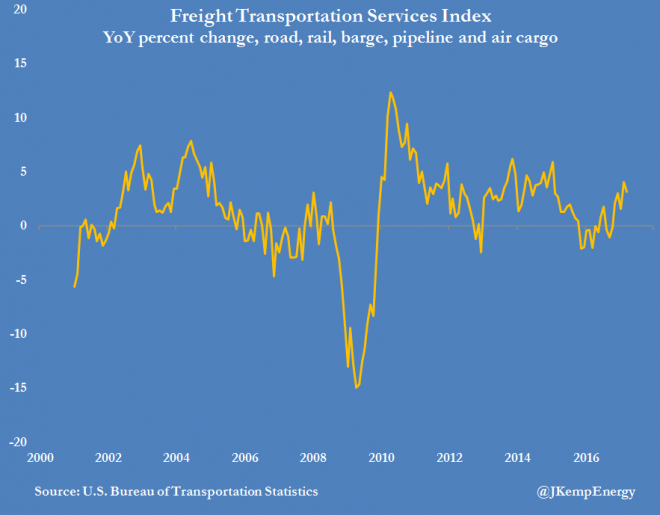 После сложного 2015 года, уменьшение товарных запасов наконец-то принесло результаты, и коэффициент товарных запасов с апреля 2016 года начал снижаться. В декабре 2016 года он составил значение 1.35. В результате, производители, а также оптовые и розничные продавцы начали делать больше заказов, что повлекло увеличение числа грузоперевозок.