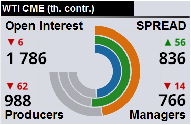 За прошлую неделю разница между OI производителей и OI управляющих сократилась на 42 238 контрактов. Разница между длинными позициями производителей и управляющих сократилась на 100 649 контрактов. Разница между короткими позициями производителей и управляющих выросла на 31 776 контрактов.