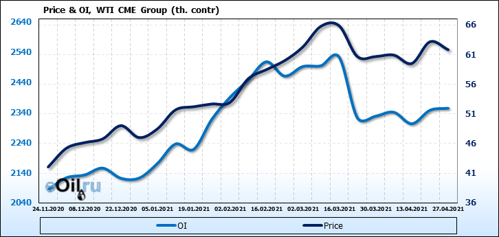 За прошлую неделю, 21.04.21 — 27.04.21, открытый интерес вырос на 7 тыс. контрактов. Объем вовлеченных в торговлю контрактов составляет 2 353 470 штук. Текущее положение дел на рынке таково, что деньги в течение прошлой недели приходили на рынок поддерживая тенденцию.