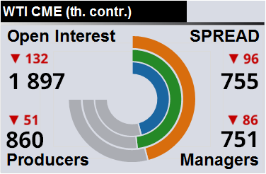 За прошлую неделю разница между OI производителей и OI управляющих сократилась на 34 905 контрактов. Разница между длинными позициями производителей и управляющих сократилась на 16 280 контрактов. Разница между короткими позициями производителей и управляющих сократилась на 17 382 контракта.