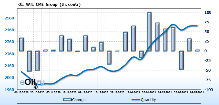 За прошлую неделю, 03.03.21 — 09.03.21, открытый интерес вырос на 3 тыс. контрактов. Объем вовлеченных в торговлю контрактов составляет 2 494 636 штук. Текущее положение дел на рынке таково, что деньги в течение прошлой недели приходили на рынок поддерживая тенденцию.