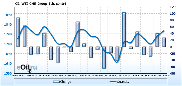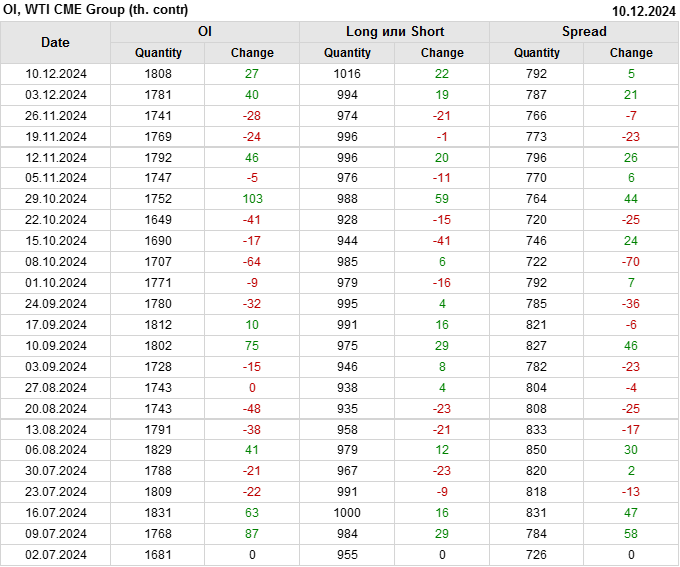 За прошлую неделю, 04.12.24 — 10.12.24, открытый интерес вырос на 27 тыс. контрактов. Объем вовлеченных в торговлю контрактов составляет 1 808 227 штук. Текущее положение дел на рынке таково, что деньги в течение прошлой недели приходили на рынок поддерживая тенденцию.