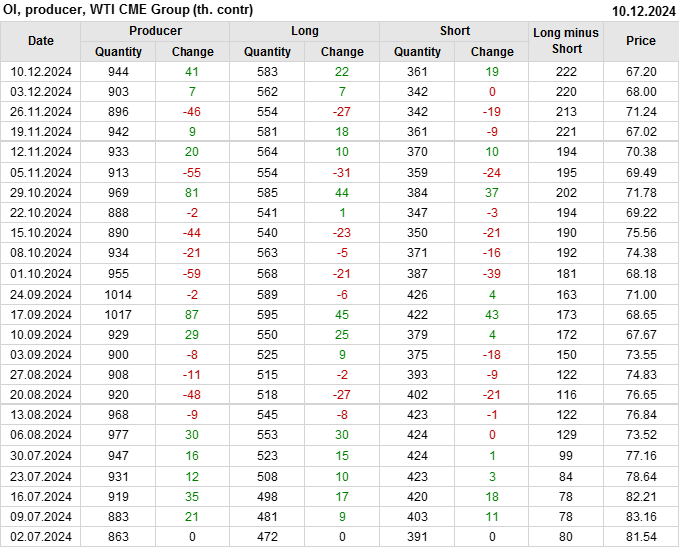 За неделю разница между длинными и короткими позициями производителей увеличилась на 2.2 тыс. контрактов.