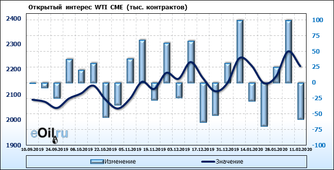 WTI. Открытый интерес на 15 февраля 2020