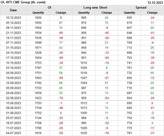 За прошлую неделю, 06.12.23 — 12.12.23, открытый интерес не изменился. Объем вовлеченных в торговлю контрактов составляет 1 650 245 штук. Деньги не видели необходимости в том чтобы уходить с рынка или приходить на него.