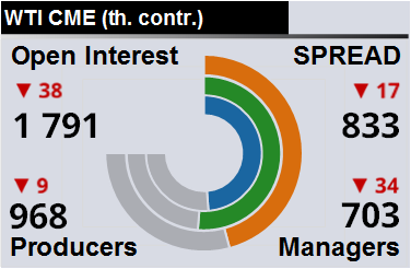 За прошлую неделю разница между OI производителей и OI управляющих сократилась на 7 653 контракта. Разница между длинными позициями производителей и управляющих сократилась на 36 600 контрактов. Разница между короткими позициями производителей и управляющих выросла на 9 028 контрактов.