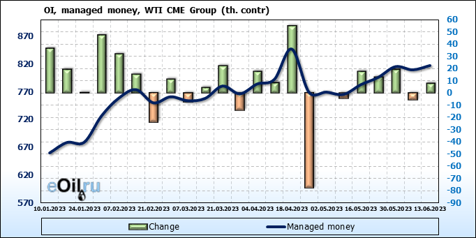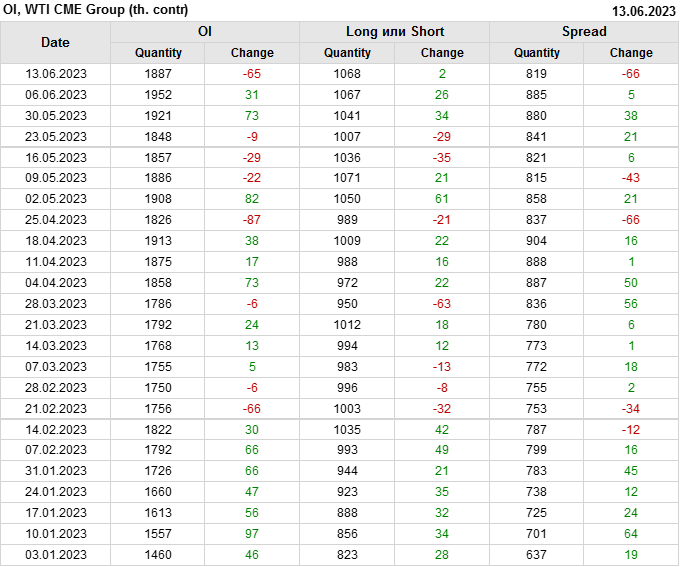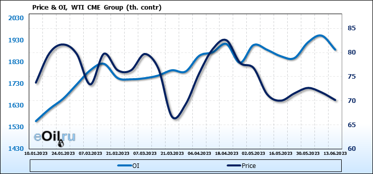 WTI. Открытый интерес на 17 июня 2023