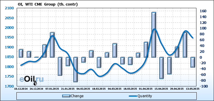 За прошлую неделю, 07.05.25 — 13.05.25, открытый интерес упал на 34 тыс. контрактов. Объем вовлеченных в торговлю контрактов составляет 1 948 099 штук. Текущее положение дел на рынке таково, что деньги в течение прошлой недели уходили с рынка не видя привлекательности в текущей ситуации.