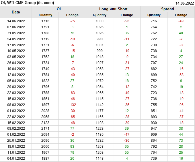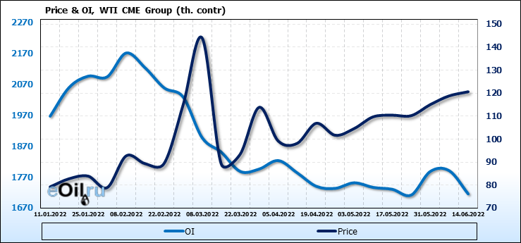 WTI. Открытый интерес на 18 июня 2022