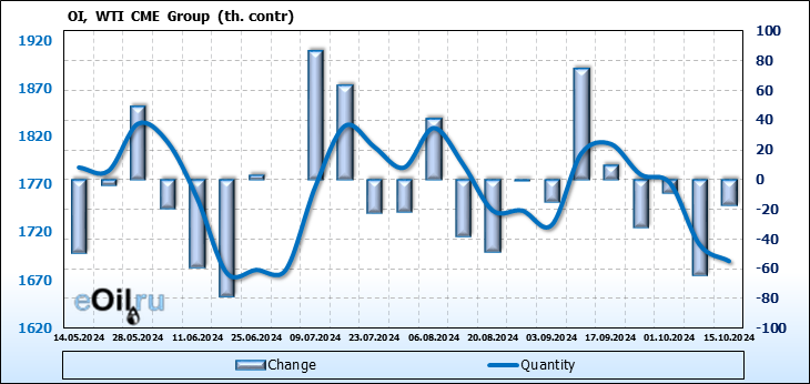 За прошлую неделю, 09.10.24 — 15.10.24, открытый интерес упал на 17 тыс. контрактов. Объем вовлеченных в торговлю контрактов составляет 1 689 760 штук. Текущее положение дел на рынке таково, что деньги в течение прошлой недели уходили с рынка не видя привлекательности в текущей ситуации.