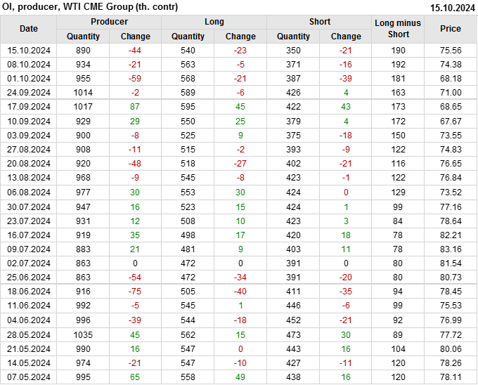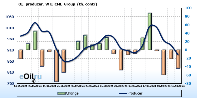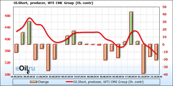 За неделю разница между длинными и короткими позициями производителей сократилась на 2.2 тыс. контрактов.