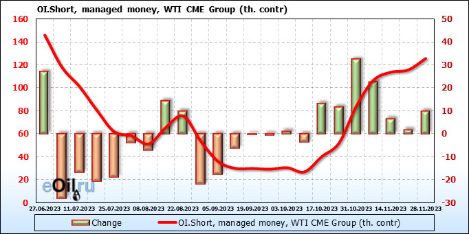 Разница между длинными и короткими позициями производителей и управляющих увеличилась на 6.8 тыс. контрактов.