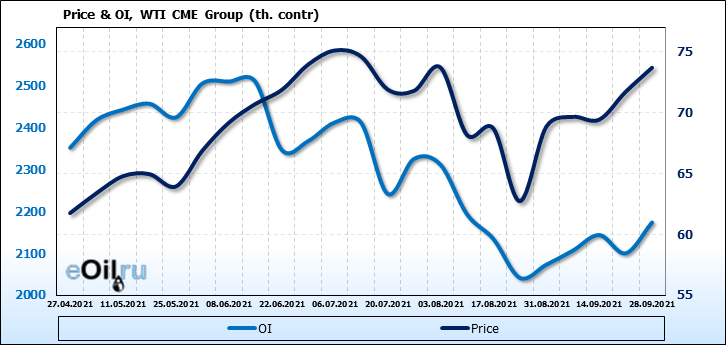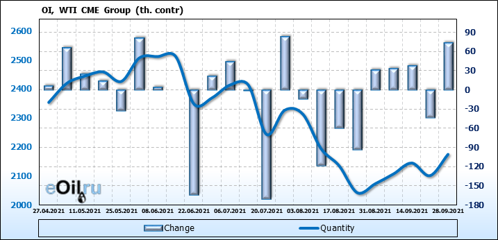 WTI. Открытый интерес на 2 октября 2021
