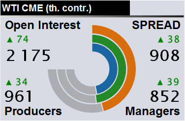 За прошлую неделю разница между OI производителей и OI управляющих выросла на 25 365 контрактов. Разница между длинными позициями производителей и управляющих выросла на 72 238 контрактов. Разница между короткими позициями производителей и управляющих выросла на 8 072 контракта.