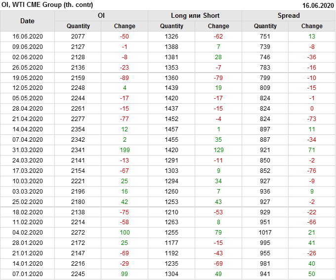 WTI. Открытый интерес на 20 июня 2020