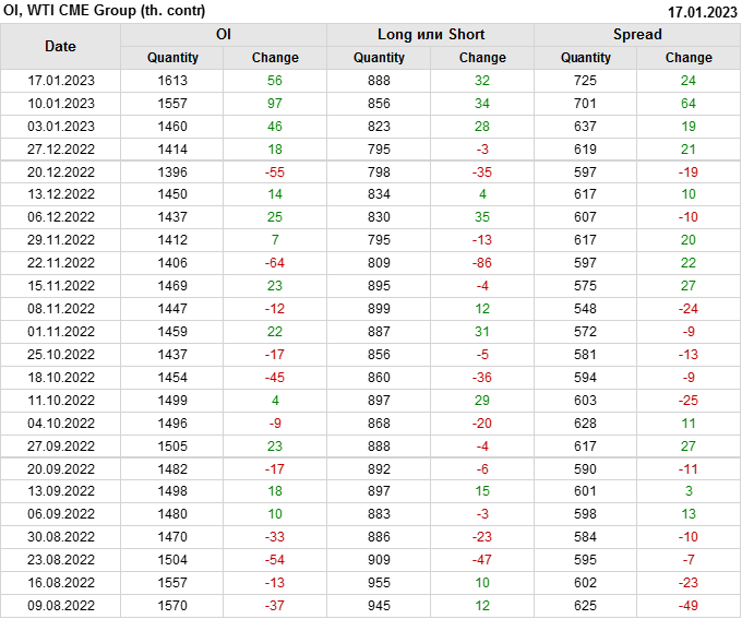 За прошлую неделю, 11.01.23 — 17.01.23, открытый интерес вырос на 56 тыс. контрактов. Объем вовлеченных в торговлю контрактов составляет 1 613 466 штук. Текущее положение дел на рынке таково, что деньги в течение прошлой недели приходили на рынок поддерживая тенденцию.