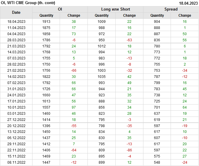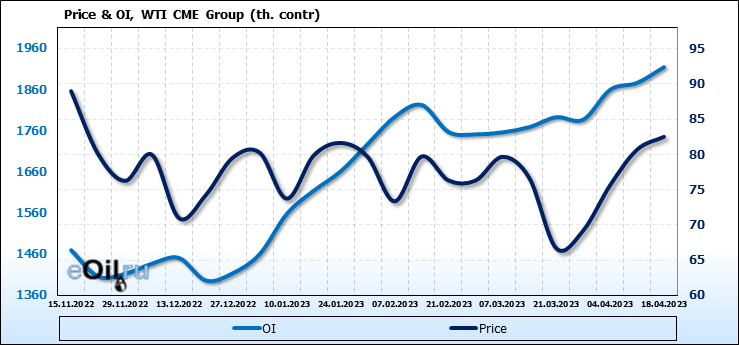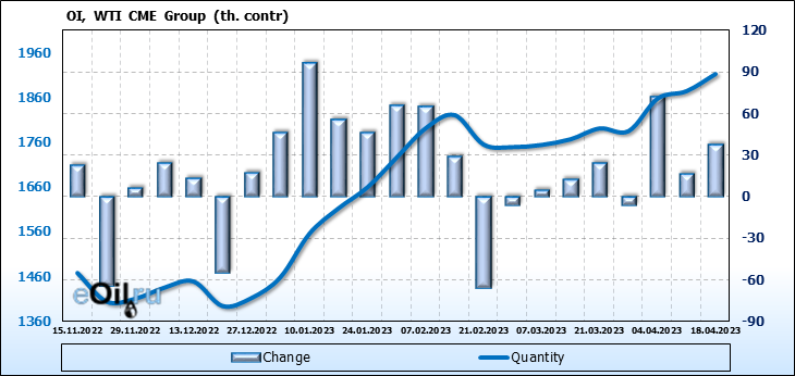 WTI. Открытый интерес на 22 апреля 2023