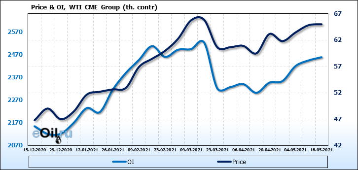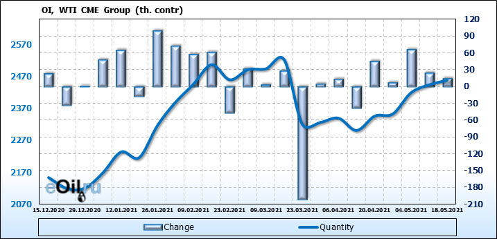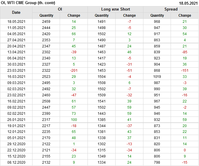 За прошлую неделю, 12.05.21 — 18.05.21, открытый интерес вырос на 14 тыс. контрактов. Объем вовлеченных в торговлю контрактов составляет 2 458 804 штуки. Текущее положение дел на рынке таково, что деньги в течение прошлой недели приходили на рынок поддерживая тенденцию.