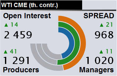 За прошлую неделю разница между OI производителей и OI управляющих выросла на 18 939 контрактов. Разница между длинными позициями производителей и управляющих сократилась на 19 054 контракта. Разница между короткими позициями производителей и управляющих выросла на 52 252 контракта.