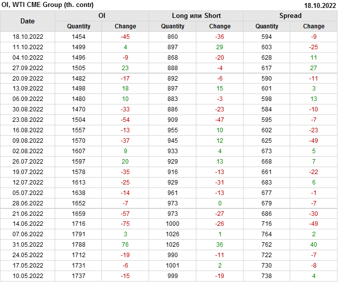 За прошлую неделю, 12.10.22 — 18.10.22, открытый интерес упал на 45 тыс. контрактов. Объем вовлеченных в торговлю контрактов составляет 1 454 431 штуку. Текущее положение дел на рынке таково, что деньги в течение прошлой недели уходили с рынка не видя привлекательности в текущей ситуации.