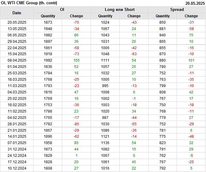 WTI. Открытый интерес на 24 мая 2025