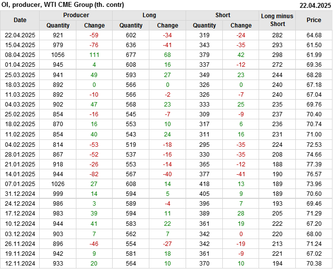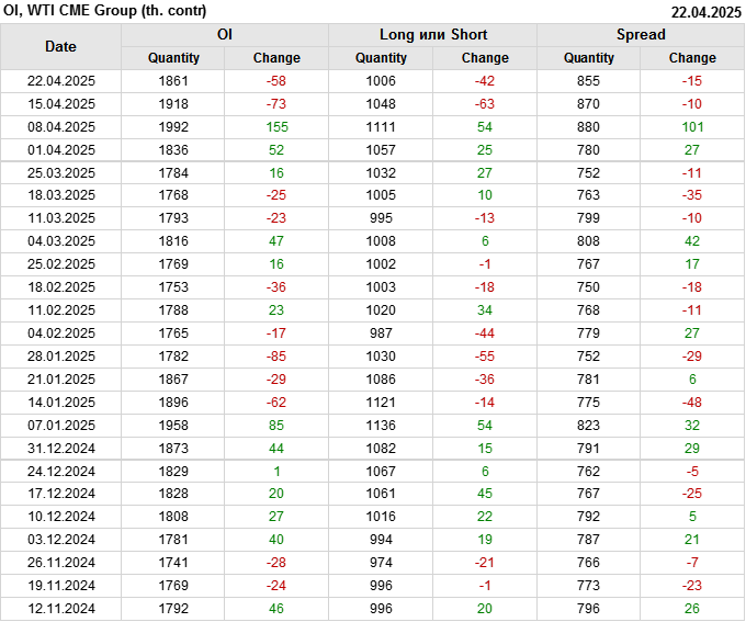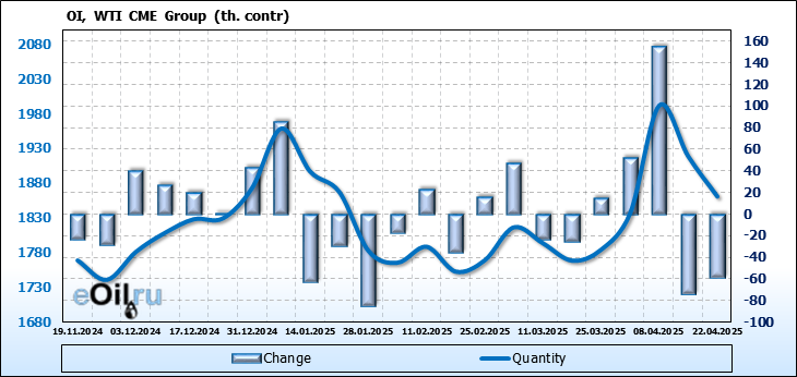 WTI. Открытый интерес на 25 апреля 2025