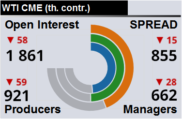 За прошлую неделю разница между OI производителей и OI управляющих сократилась на 18 787 контрактов. Разница между длинными позициями производителей и управляющих сократилась на 17 054 контракта. Разница между короткими позициями производителей и управляющих выросла на 15 429 контрактов.