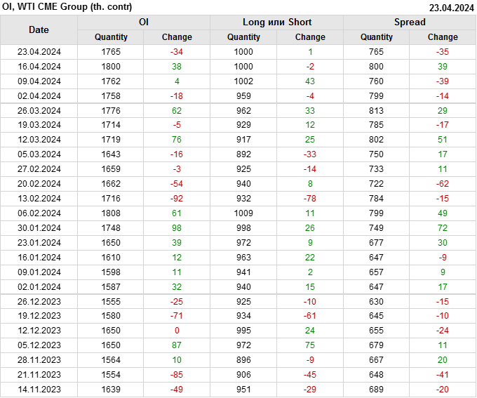WTI. Открытый интерес на 27 апреля 2024