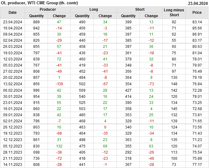 За неделю разница между длинными и короткими позициями производителей увеличилась на 21 тыс. контрактов.