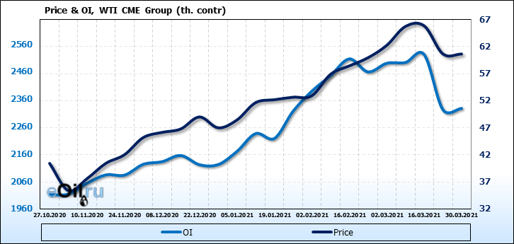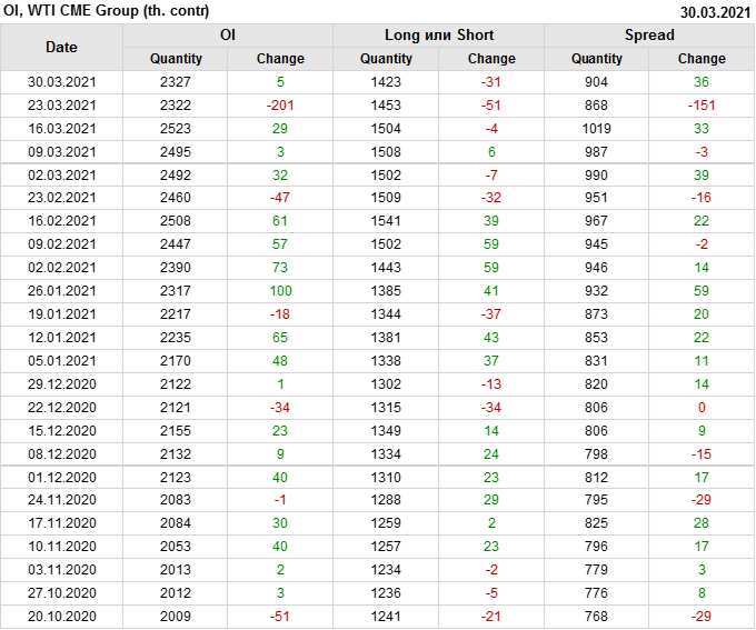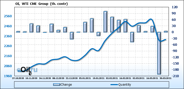 За прошлую неделю, 24.03.21 — 30.03.21, открытый интерес вырос на 5 тыс. контрактов. Объем вовлеченных в торговлю контрактов составляет 2 327 016 штук. Текущее положение дел на рынке таково, что деньги в течение прошлой недели приходили на рынок поддерживая тенденцию.