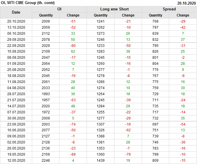 WTI. Открытый интерес на 3 октября 2020