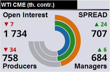 Открытый интерес производителей упал на 34 тыс. контрактов. Объем контрактов, направленных на хеджирование, составляет 758 441 штуку. Деньги производителей в течение прошлой недели уходили с рынка не видя привлекательности в текущей ситуации.