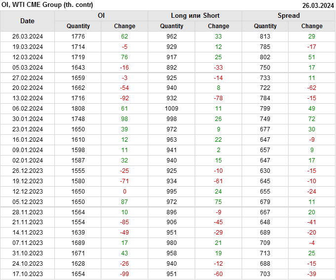 WTI. Открытый интерес на 30 марта 2024