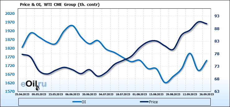 WTI. Открытый интерес на 30 сентября 2023