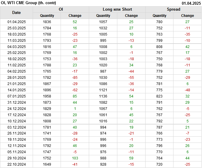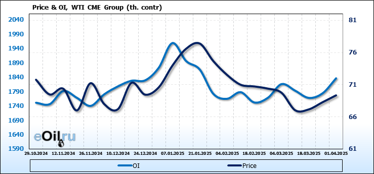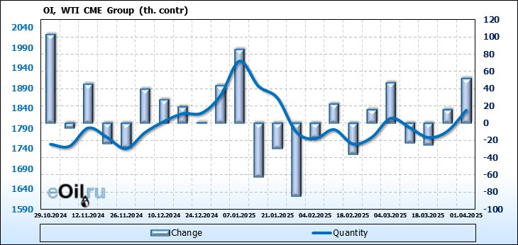 WTI. Открытый интерес на 5 апреля 2025