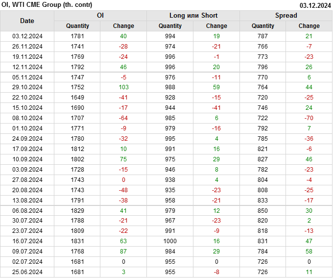 WTI. Открытый интерес на 7 декабря 2024