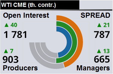 За прошлую неделю разница между OI производителей и OI управляющих выросла на 14 381 контракт. Разница между длинными позициями производителей и управляющих выросла на 21 672 контракта. Разница между короткими позициями производителей и управляющих выросла на 22 706 контрактов.