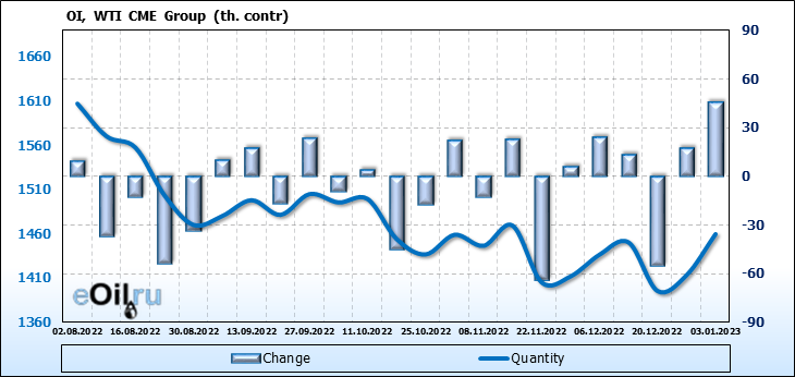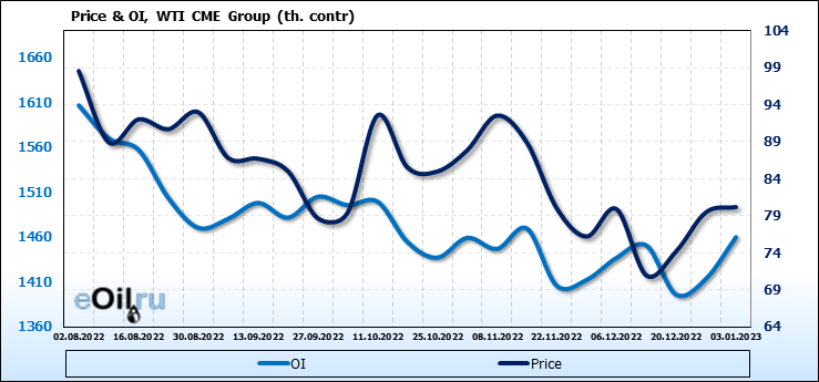 За прошлую неделю, 28.12.22 — 03.01.23, открытый интерес вырос на 46 тыс. контрактов. Объем вовлеченных в торговлю контрактов составляет 1 459 936 штук. Текущее положение дел на рынке таково, что деньги в течение прошлой недели приходили на рынок поддерживая тенденцию.