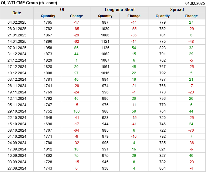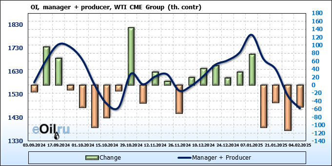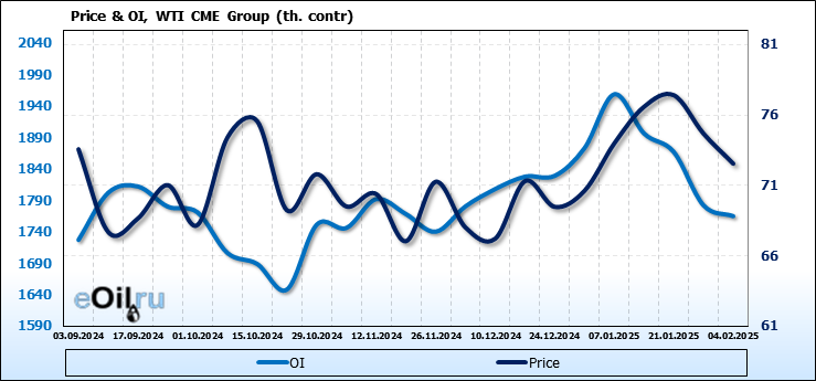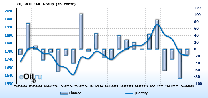 WTI. Открытый интерес на 8 февраля 2025