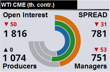 Открытый интерес управляющих активами без учета объема торговцев занимающих противоположные позиции по фьючерсным контрактам с разной датой экспирации упал на 53 тыс. контрактов. Объем контрактов, направленных на спекуляции, составляет 751 081 штуку. Деньги управляющих в течение прошлой недели уходили с рынка не видя привлекательности в текущей ситуации.