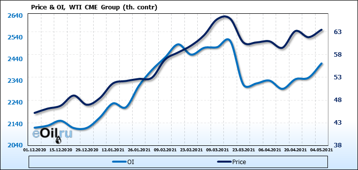 WTI. Открытый интерес на 8 мая 2021
