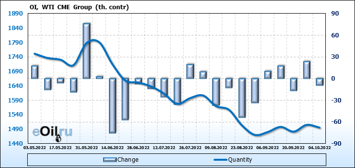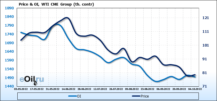 За прошлую неделю, 28.09.22 — 04.10.22, открытый интерес упал на 9 тыс. контрактов. Объем вовлеченных в торговлю контрактов составляет 1 495 538 штук. Текущее положение дел на рынке таково, что деньги в течение прошлой недели уходили с рынка не видя привлекательности в текущей ситуации.