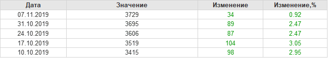 Коммерческие запасы нефти в США, EIA. Данные на 06.11.2019