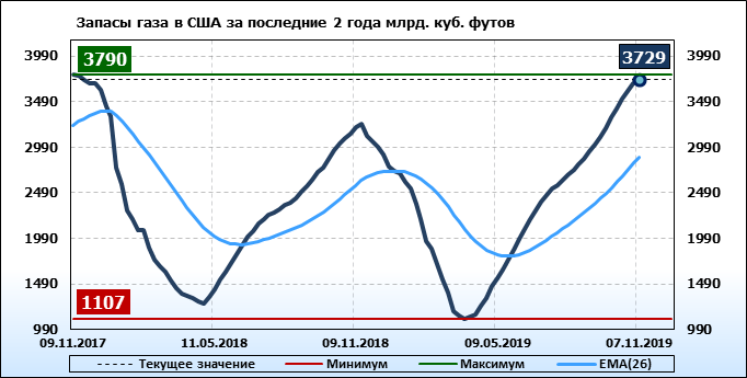 Запасы газа в США, EIA. Данные на 07.11.2019