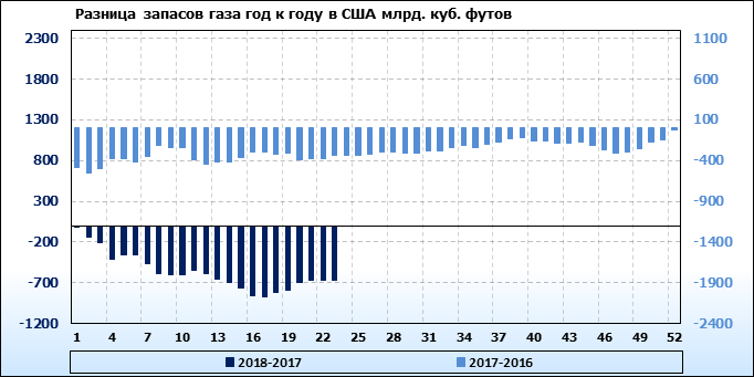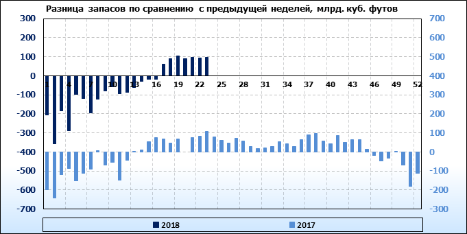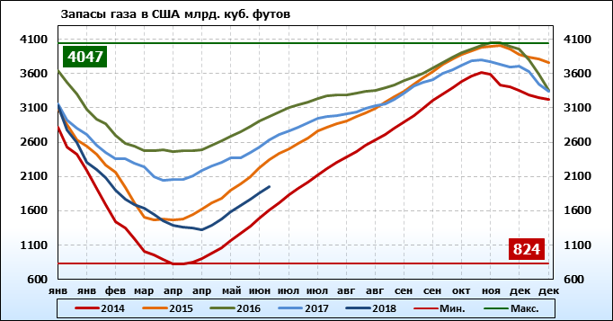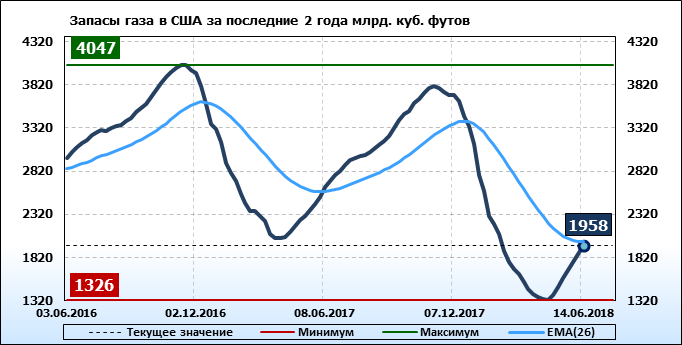 По сообщению статистической службы EIA запасы газа в США на 14.06.2018 составили 1958 млрд. куб. футов.