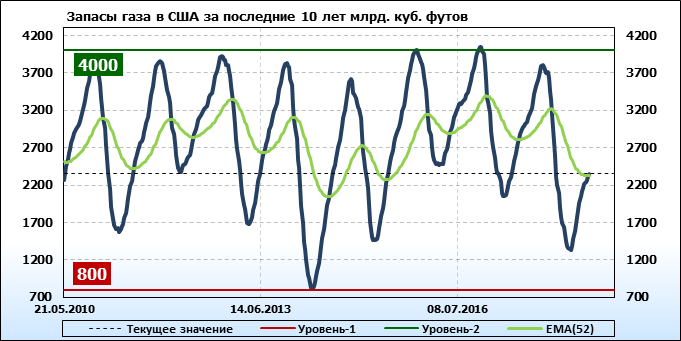 Запасы газа в США, EIA. Данные на 16.08.2018