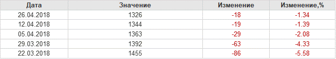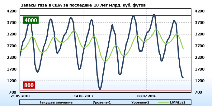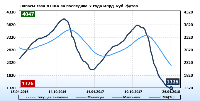 По сообщению статистической службы EIA запасы газа в США на 26.04.2018 составили 1326 млрд. куб. футов.