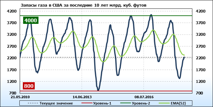 Запасы газа в США, EIA. Данные на 26.07.2018