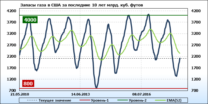 Запасы газа в США, EIA. Данные на 28.06.2018